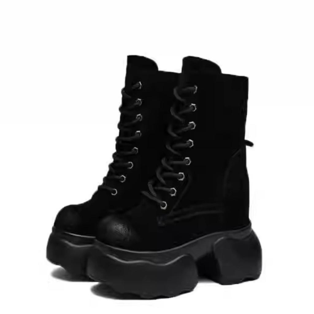 Black Martin boots women's 2025 autumn new thick-soled British locomotive short boots high-heeled thick-soled inner height-increasing women's boots