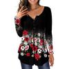 Women's Fashion Button Print Loose Casual Long-Sleeved T-Shirt Tops