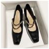New Spring and Autumn Soft Leather Soft Sole Comfortable Low Heel Round Head Fashion Thick Heel Bright Leather Shoes Women