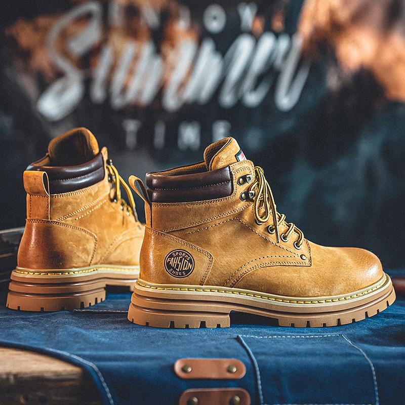 Top Handgefertigte Martin Stiefel Herren Vintage Britische Rhabarberstiefel Herbst Outdoor Wanderschuhe High Top Tooling Stiefel