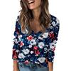 Playeras De Mujeres Ladies' Fashionable Casual Long Sleeved Retro Floral Print V-Neck Top Women'S T-Shirts Women Clothes