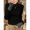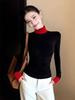Herbst Winter Neue T-Shirts Damen Tees Mock Nerk Kontrastfarbe Patchwork Mode Lässig Jugend Langarm Warm Unterzieh-Tops