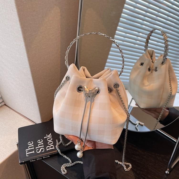 Karomuster Tasche Damen Sommer neue Mode Nische Kette Umhängetasche Kordelzug plissierte Bucket Bag