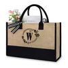 Eine modische und schlichte Tragetasche in Buchstabenform mit einer geräumigen Jute-Handtasche