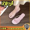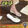 Mode Retro Vielseitige Keilabsatz Hausschuhe Damen Sommerbekleidung Neu Flache Sohle Schlichte Zehenpartie Rutschfest Ein-Wort Pantoletten Damen