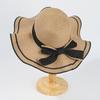 Summer bow straw hat beach hat big eaves streamer vacation play outdoor breathable sunshade wavy edge sun protection hat
