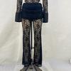 2024 European & American Lace Patchwork Deep V Top & Sheer Flared Pants Women's Set