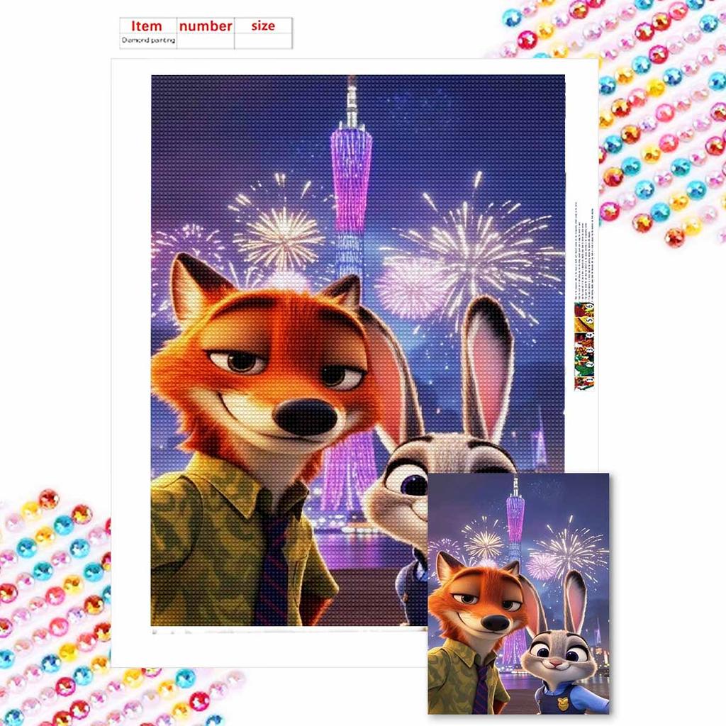 Diamantmosaik Buntes Diamantbild Nick und Polizistin Judy Das Kaninchen Vollrund Stickerei Cartoon Kreative Hobbys Wanddekor