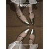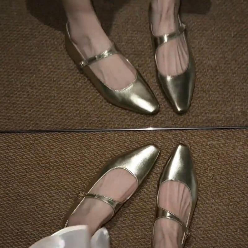 Goldene spitze Zehenpartie mit Mary-Jane-Schuhen, flacher Ausschnitt Damenschuhe, flacher Boden mit innerer Höhenerhöhung einzelne Damenschuhe