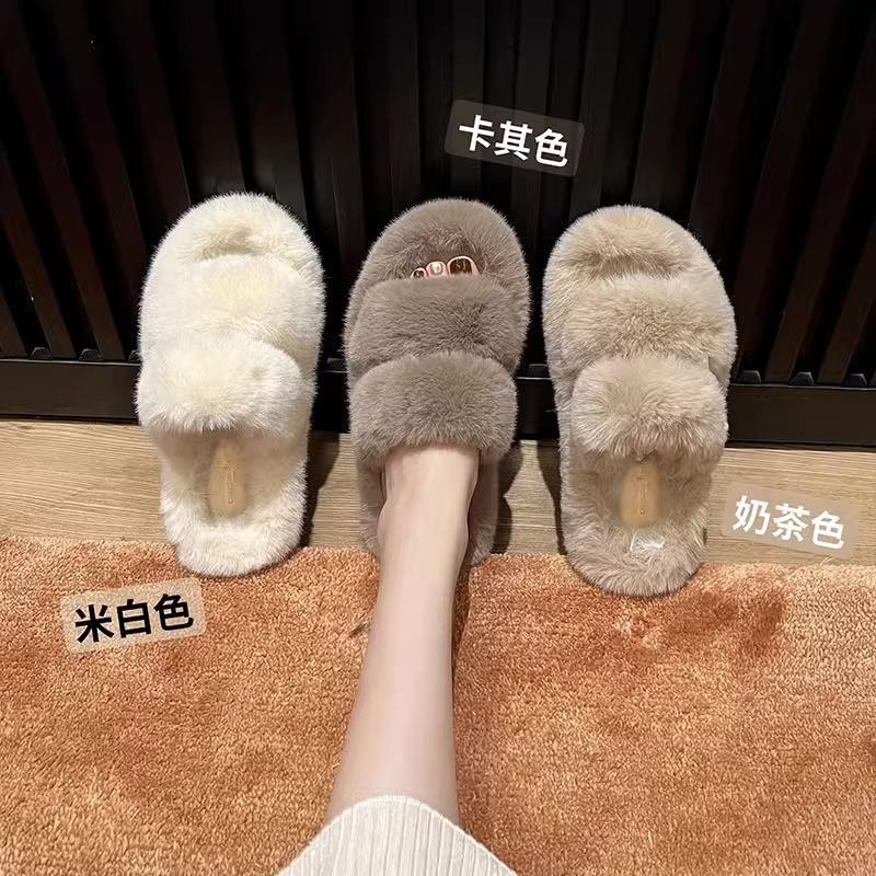 Mao Mao Schuhe Hausschuhe Damen tragen 2025 neu Frühling und Herbst Winter Internet-Berühmtheit Plüsch haarige Pantoletten dicksohlige einteilige Baumwollhausschuhe