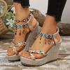 2025 new European and American style fashion round head open-toe one-word sleeve with women's large size fashion wedge sandals
