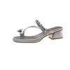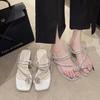 New temperament outer thick heel slippers 2025 French year fairy cool slippers rhinestone summer shoe cover toe