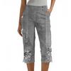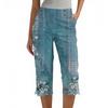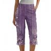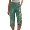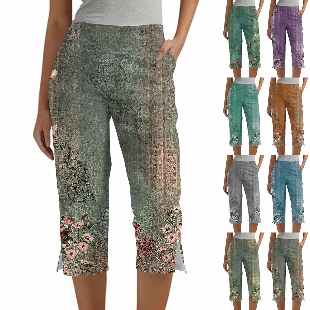 Damen Vintage Blumenmuster Knopf Tasche Hose Schlitz Hohe Taille Sport Yoga Freizeit Hose