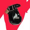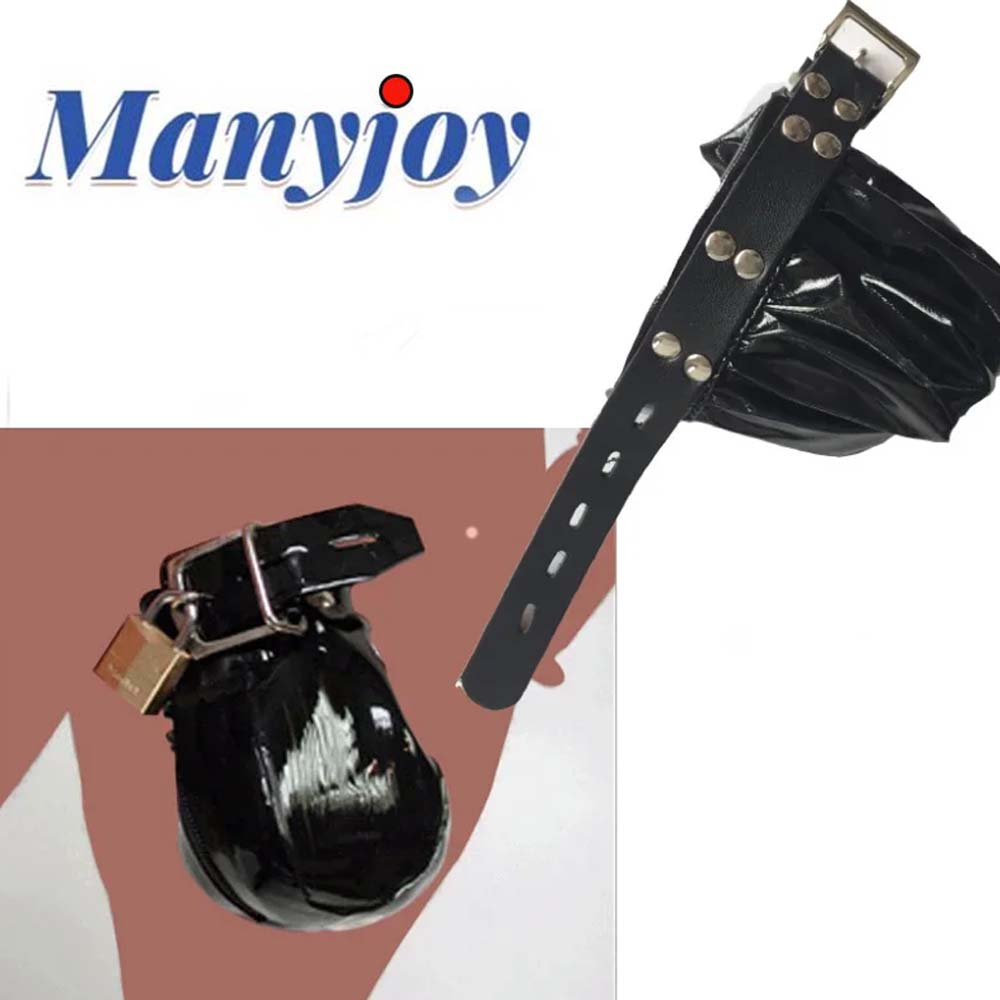 Manyjoy Lackleder Ball Keuschheitsvogelkäfig Penis Hülle Hoden Sack Keuschheitskäfig mit Schloss Lätzchen Männlich Sexspielzeug für Männer