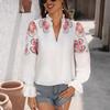 Ein neues und modisches V-Ausschnitt-, Puffärmel- und Rüschen-Damenhemd mit Print