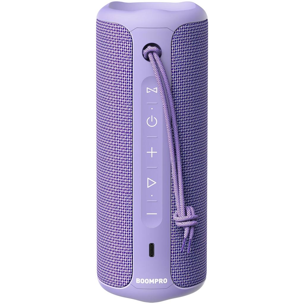 BOOMPRO - Compact Bluetooth Speaker with 40W Powerful Stereo Sound. Weighing just 560g, it's easy to carry with one hand! IPX7 Waterproof, perfect for the bathroom, kitchen, pool, and more. Wireless speaker with multi-color LEDs, 20 hours of playtime, and a 5000mAh battery. Fits in a bicycle or car drink holder. Bluetooth 5.3 compatible, built-in microphone, and hands-free calling.