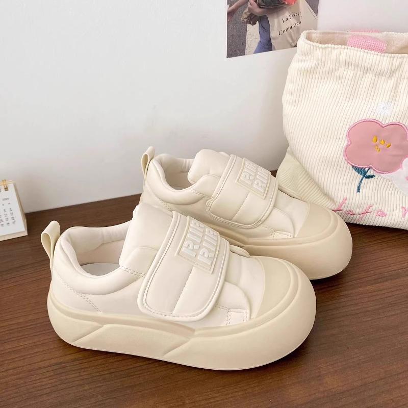 Milchweiße Plateau weiße Schuhe Damen hässlich süß Herbst neu Nische Klettverschluss großer Kopf Brotschuhe Studenten Board Schuhe