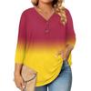 3/4 Length Sleeve Womens Tops Plus Size Button Down V Neck Shirts Blouses Casual Print Loose