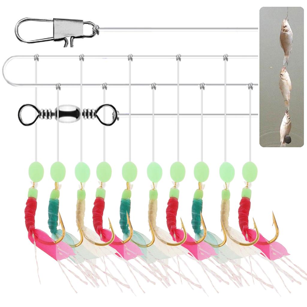 10 Stück Realistische Fischhaut Bunte Vorfachhaken Vorgefertigte Ködermontagen 8-15# Salzwasser Süßwasser Angelzubehör