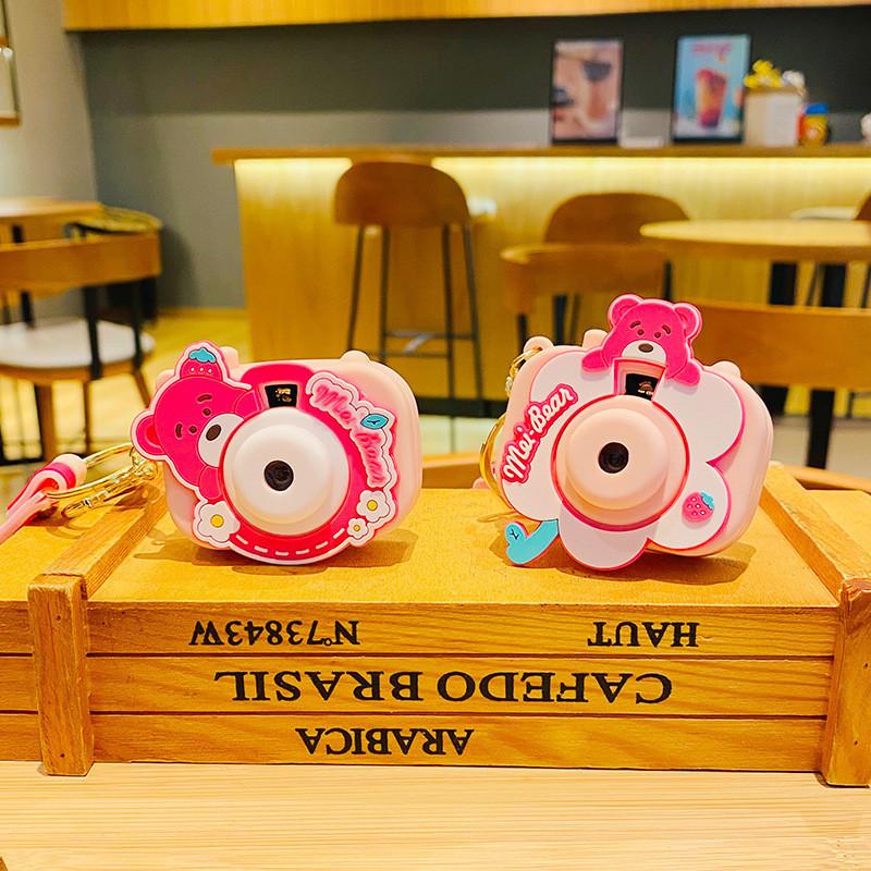 Pink Sweet Bear Camera Keychain Trendy Cute Cartoon Bag Charm Ideal Parties For