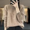 Ein neuer Damen-Strickpullover mit Rundhalsausschnitt für Herbst und Winter, einfarbig, langärmlig, lässig, schlicht und locker als Basisschicht