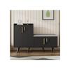 Schuhbank Schwarz Hochglanz Sitzbank Stauraum, gepolstert, 1 Schranktür, 2 offene Fächer, Schuhregal Flur, Eingang, Wohnzimmer, bis 100 kg