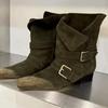 Rindslederversion~ Nischen-Street-Show Square Toe Western-Cowboystiefel Damen Dicke Ferse Leder Kurze Stiefel Mode Damenstiefel