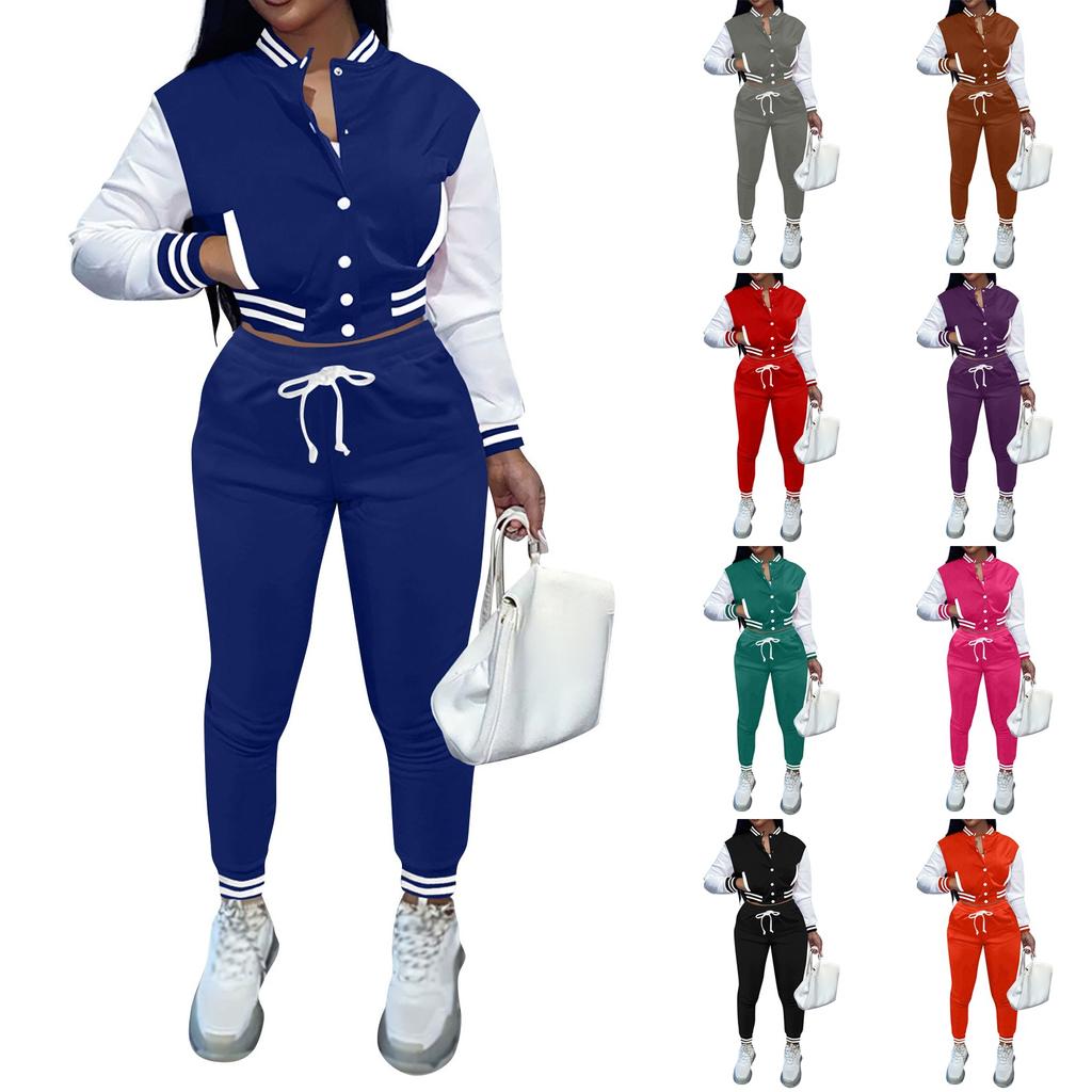 Damen Einfarbige Kurzjacke Einreihiger Anzug Kurzes Lässiges Schlankes Sport Zweiteiliges Set