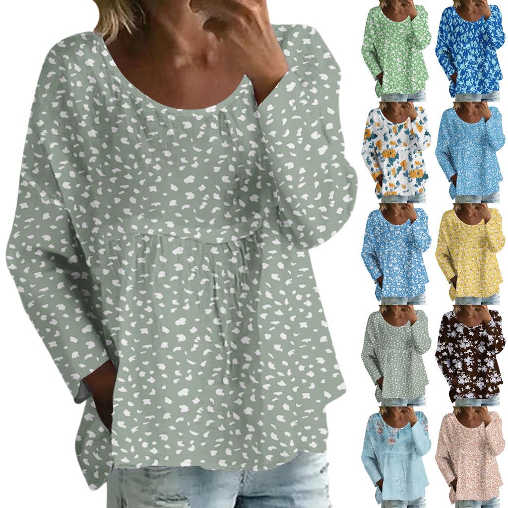Damen Casual Mode Locker Rundhals Blumenmuster Langarm Oberteil