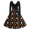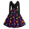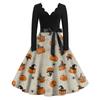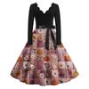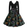 Damen Casual Fashion Langarm Halloween Grafik bedruckt Vintage Lange Kleider