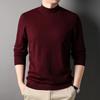 Machine Washable Thickened Full Wool Men's Half Turtleneck Sweater Versatile Solid Color Warm Knitted Base Sweater Men