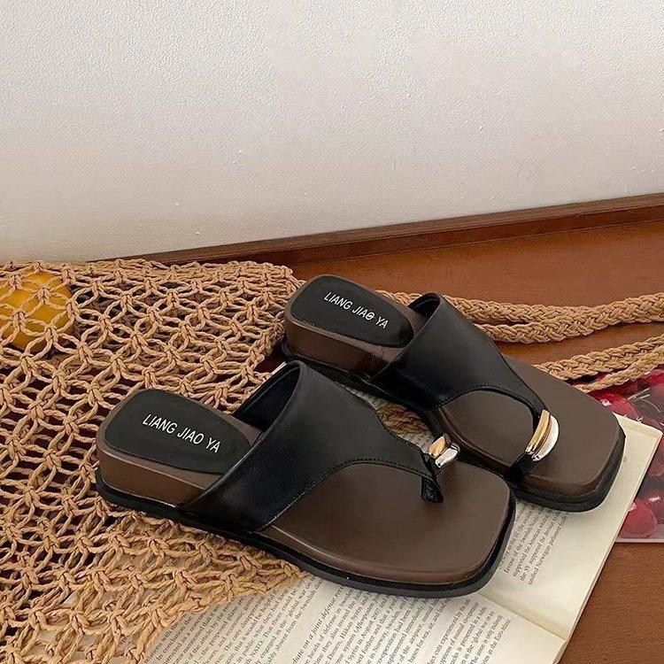 Internet-Berühmtheit High Sense Rutschfeste Dicke Sohle Keilabsatz Zehensandalen Damen Sommerkleidung 2025 Neue Erhöhung Französisch Coole Hausschuhe