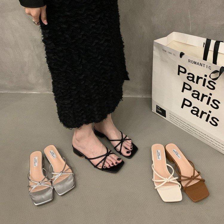 Französische kleine coole Hausschuhe Kinder 2025 Sommer neu Oberbekleidung täglich vielseitig flacher Boden Ein-Wort-Draussen Damenhausschuhe