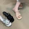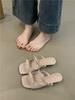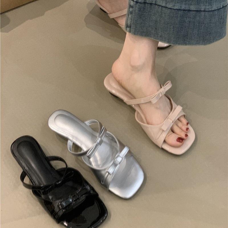 Französische süße Doppel-Schleife coole Hausschuhe Damen 2025 Sommer Temperament elegant Feenwind Keilabsatz Urlaubs-Hausschuhe