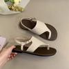 Linen toe sandals women's summer wear Mori retro toe Roman shoes vacation wind travel flat beach shoes