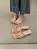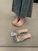 Französische quadratische Zehenpartie offene coole Hausschuhe Damen 2025 Sommer schöne Schleife Feenwind nach dem Tragen Sandalen mit dickem Absatz