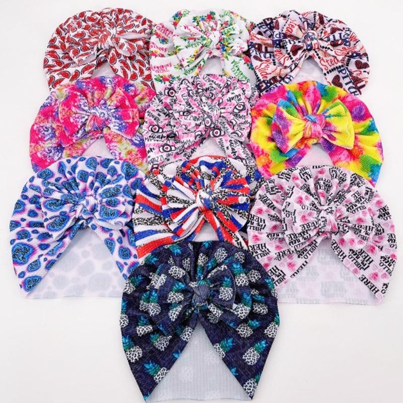 Neue Kinder-Knotenmütze, niedliche kreative bedruckte gerippte Schleifenmütze, Baby-Schlupfmütze