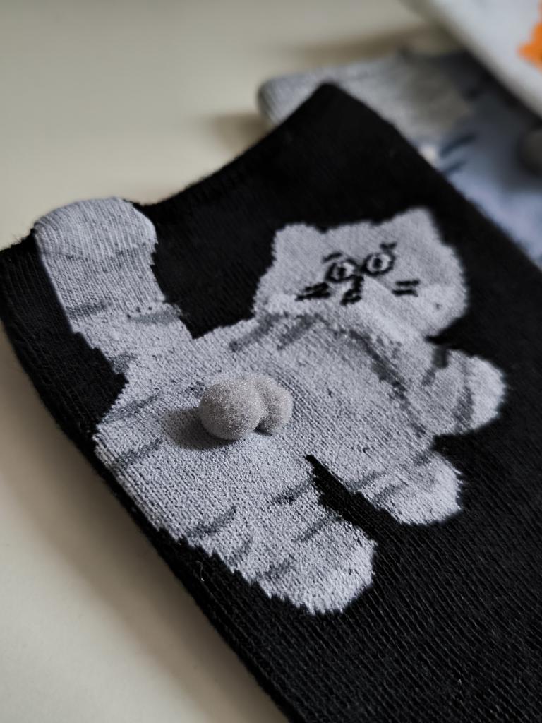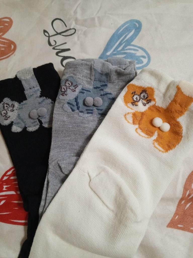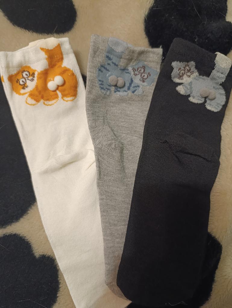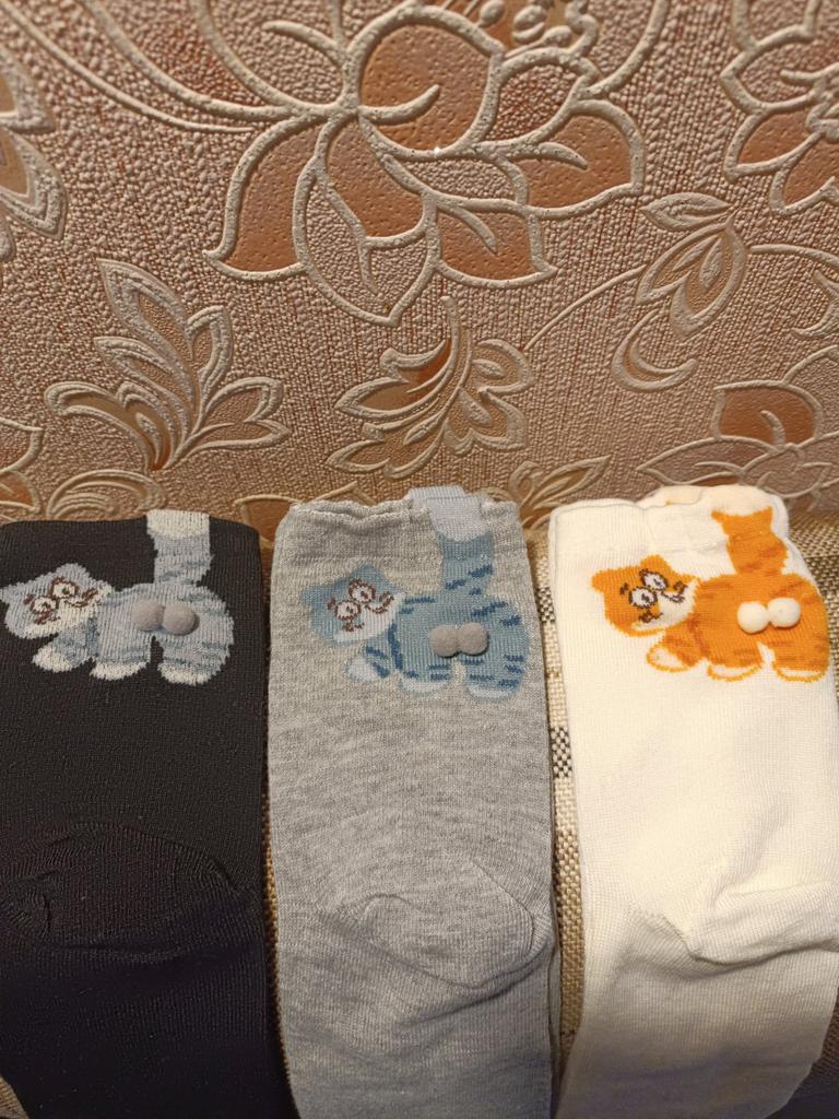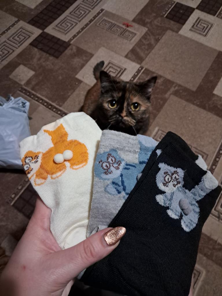 Ausgezeichnete Socken mit Kätzchen Und der Preis jetzt gerade 🔥 Das ist für 3 Paar 👌🏻😌 Also, ab in den Warenkorb Die Qualität ist gut, sie sind elastisch, liegen gut am Fuß an, rutschen nicht und drücken nicht.. Die Kokosnüsse sind aufgeklebt, halten zuverlässig, fallen aber mit der Zeit wahrscheinlich ab 🤭 Passt perfekt auf 24,5-cm-Füße. Ich empfehle es mit Zuversicht 🤗