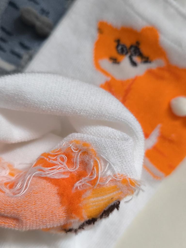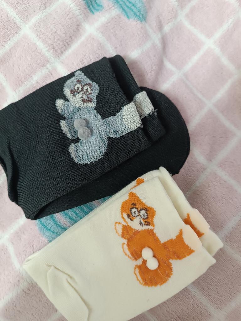 Eigentlich ganz süß, aber bei 2 (!!) Paaren sind die "Bällchen" mit an der gegenüberliegenden Seite festgenäht, sodass man die Socken nicht öffnen kann. 😭😭😭