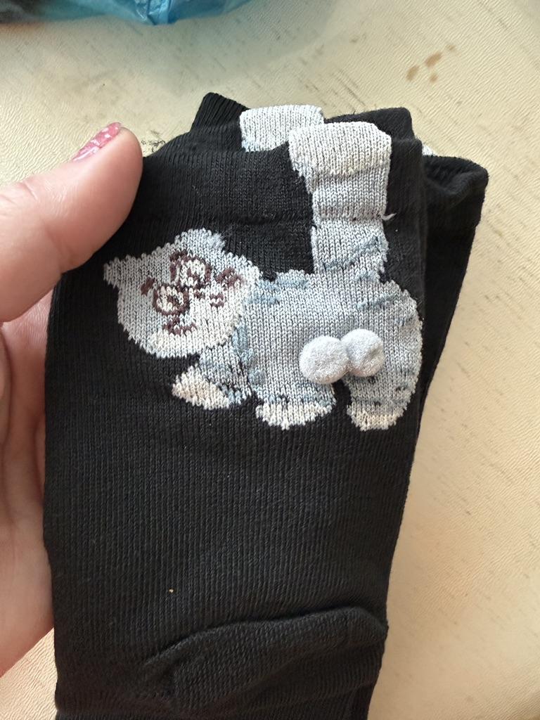 Niedliche Söckchen, besonders die mit dem roten Kätzchen. Dünn. Danke.