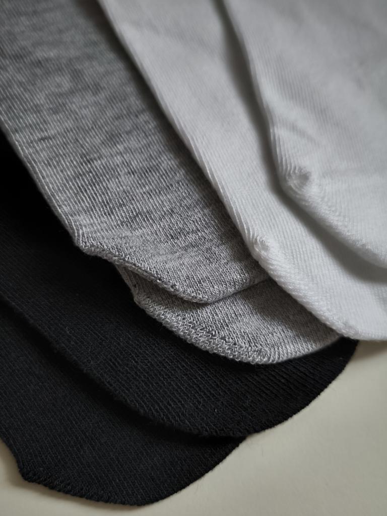Die Größe passte, es kamen drei Paar, wie in der Werbung angegeben, im Gegensatz zu den grauen und schwarzen (pro Paar).