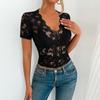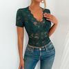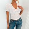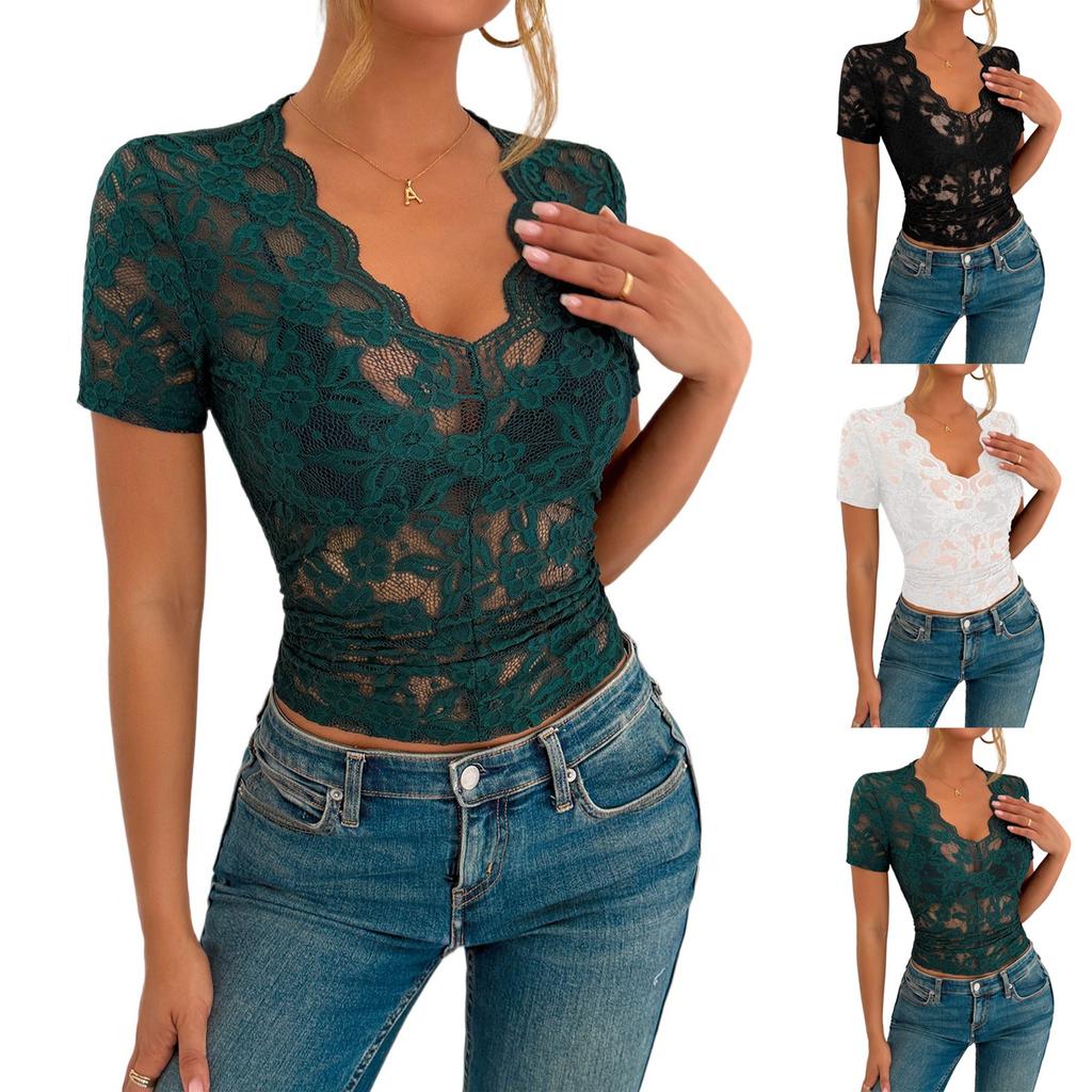 T-Shirts für Damen Plissiertes V-Ausschnitt Schick Lässig Blusen Druck Kurzarm Sommeroberteile Lockere Passform