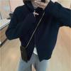 Reißverschluss-Cardigan mit gepolsterten Schultern, Stehkragen, Damenstrickmantel, neuer Revers-Pullover