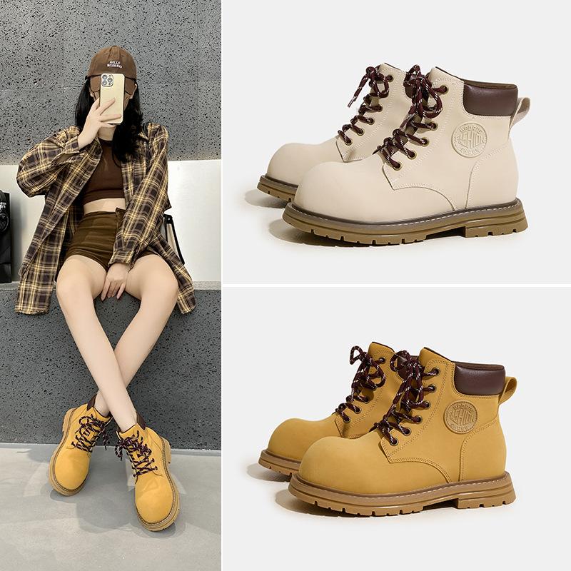 Martin boots women's 2025 autumn new thick-soled big head British style short boots outdoor casual versatile big yellow boots women's