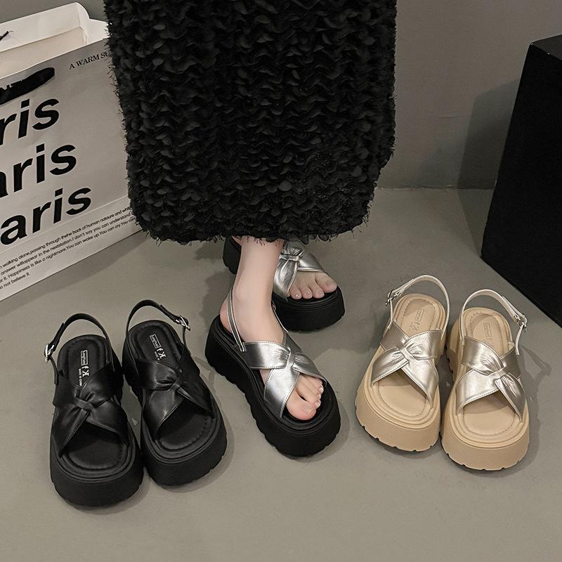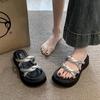 Silberne Pantoffeln Damen Sommer Oberbekleidung 2025 neu trendig retro kleiner Mann dicker Boden erhöhend koreanisch coole Pantoffeln