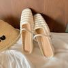 Schafsfellversion~ erhöhte hohle Tasche Kopf Halbschuhe Damen Sommerbekleidung lässig gewebte kühle Hausschuhe Strandsandalen Damen Tide