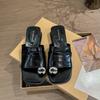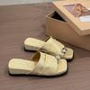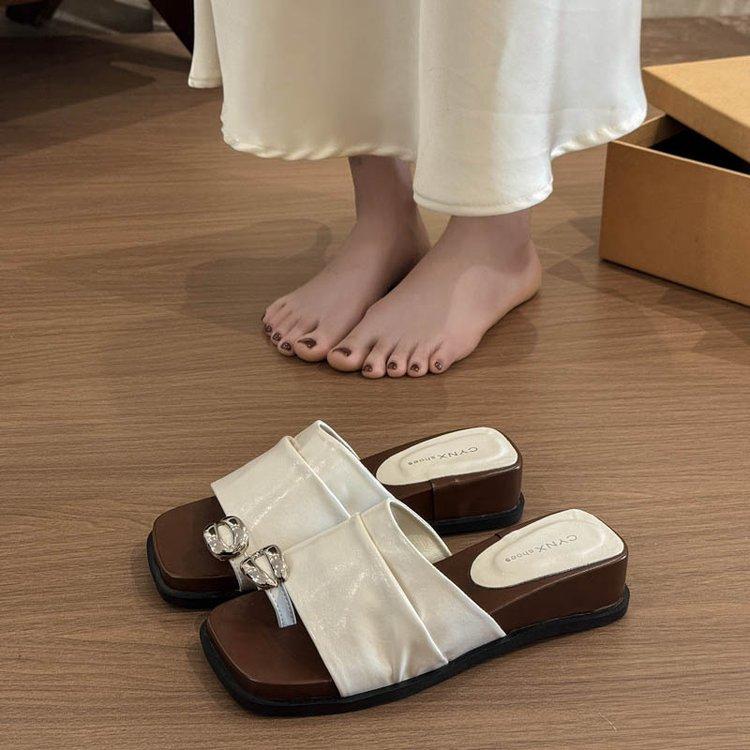 French set of toe pleated slippers women's summer wear 2025 new high-end not tired foot slope heel temperament cool slippers