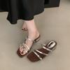 Holiday style! With skirt silver metal toe slippers women summer wear socialite thick heel French beach cool slippers