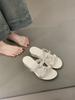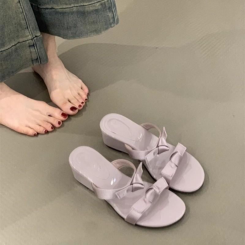 Slope heel gentle evening breeze flip-flops summer 2025 French temperament elegant bow purple with skirt sandals