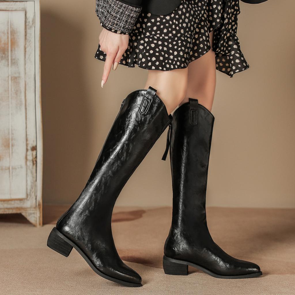 Autumn and winter but knee boots women pointed thick heel knight boots rear zipper slim design boots soft leather low heel